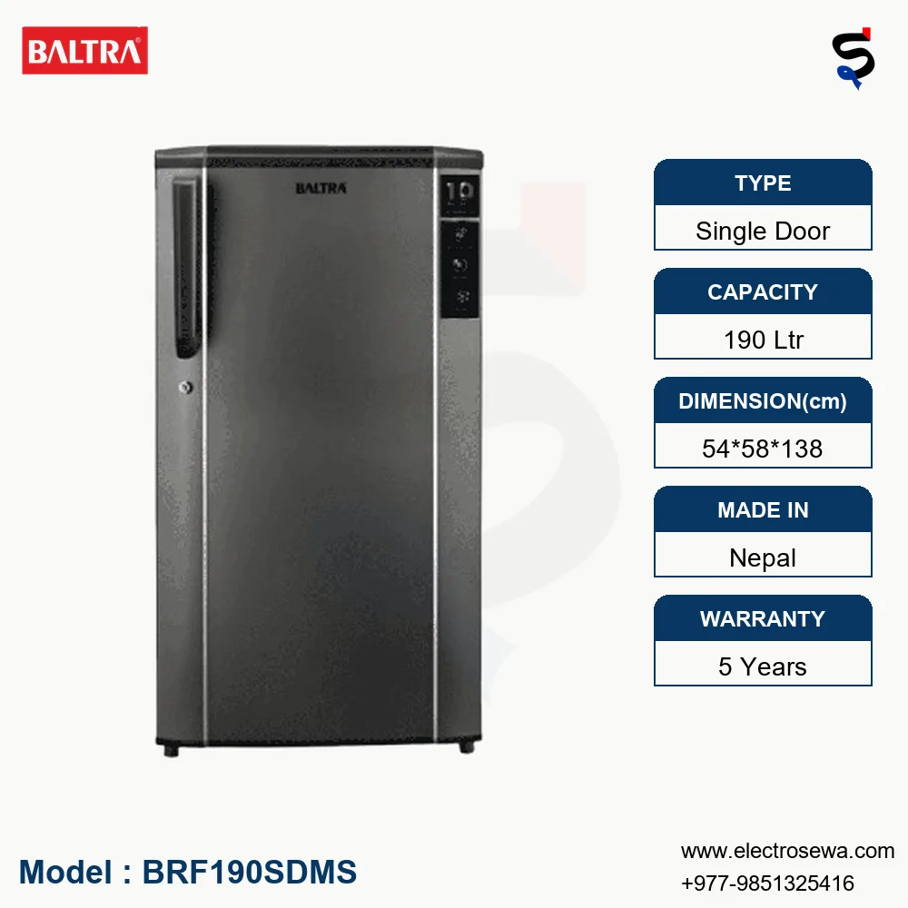 Introducing the BALTRA Refrigerator – 190 Ltr Single Door Plain Metallic Silver (BRF190SDMS), a sleek and efficient cooling solution for your kitchen.