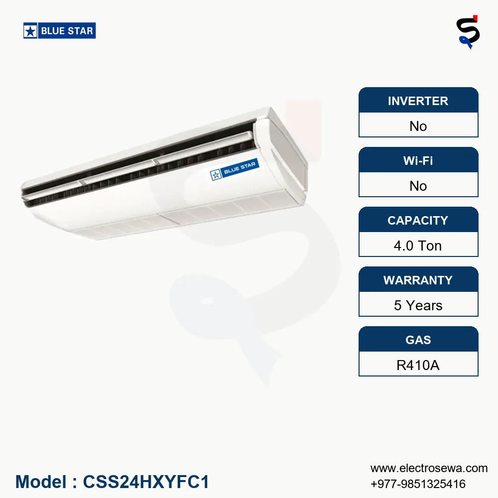 Experience Comfort with BLUE STAR – 2.0 TR Ceiling Suspended – Non-Inverter Fixed Speed AC (CSS24HXYFC1)