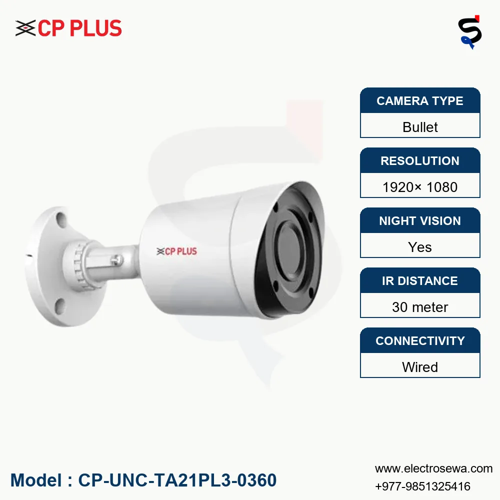 The CP PLUS 5MP Color Bullet Camera is engineered to deliver crystal-clear surveillance with vibrant full-color imaging, even in low-light conditions. Designed for both indoor and outdoor security, this dome camera combines advanced Guard+ technology with durable construction to provide reliable, round-the-clock protection for residential, commercial, and industrial environments.