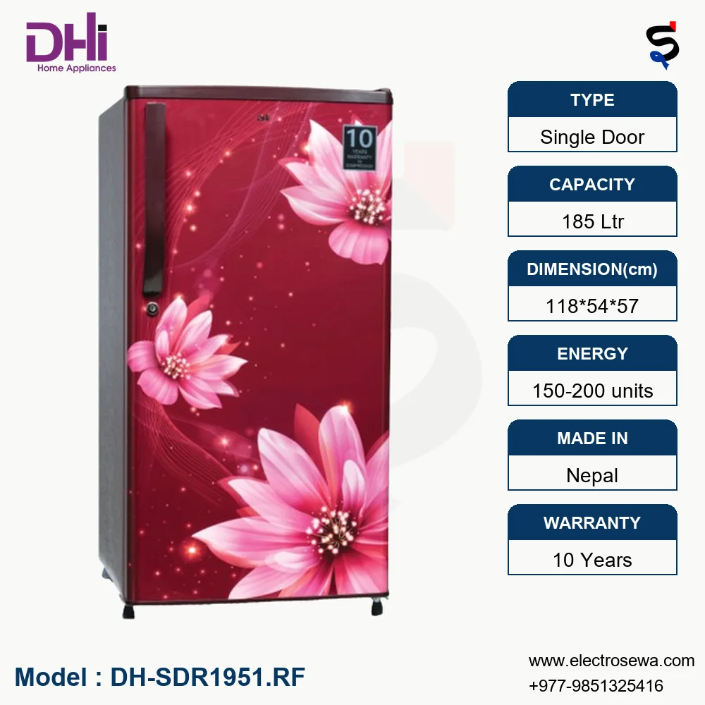 The DHI Single Door Refrigerator (DH-SDR1951.RF) offers efficient cooling, ample storage space, and convenient features to meet your refrigeration needs. Whether you’re storing fruits, vegetables, or beverages, this refrigerator provides reliable performance and enhances the functionality of your kitchen.