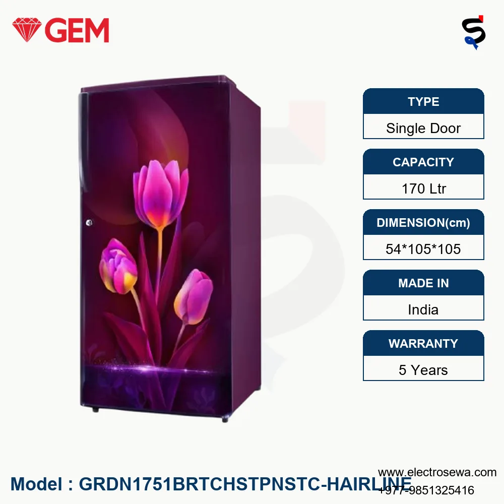 / GEM – 170 Ltr- Single Door Refrigerator (GRDN1751 BRTC/HSTP/NSTC-HAIRLINE )