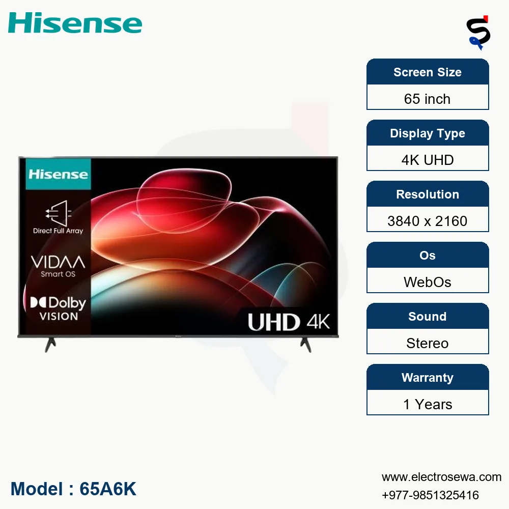 Electrosewa is a trusted retailer in Nepal, offering a wide range of high-quality electronics and home appliances. When you purchase the Hisense 4K UHD Google Tv (65A6K) from Electrosewa, you benefit from: