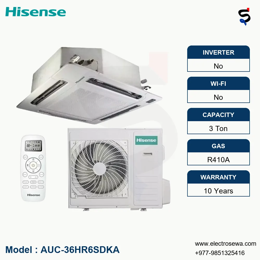The Hisense 3 Ton Ceiling Cassette Air Conditioner is an exemplary choice for those seeking a blend of performance, efficiency, and aesthetics. Its superior cooling capabilities, energy-saving features, sleek design, and user-friendly functionalities make it a worthwhile investment for both residential and commercial spaces. Whether you’re looking to upgrade your current air conditioning system or install a new one, the Hisense Ceiling Cassette Air Conditioner is a solution that promises comfort, efficiency, and peace of mind.