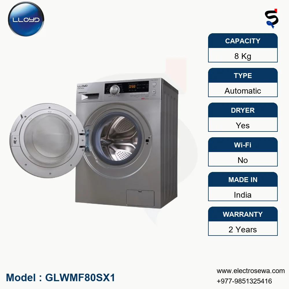 LLOYD Washing Machine 8 Kg Front Load (GLWMF80SX1) Overview: