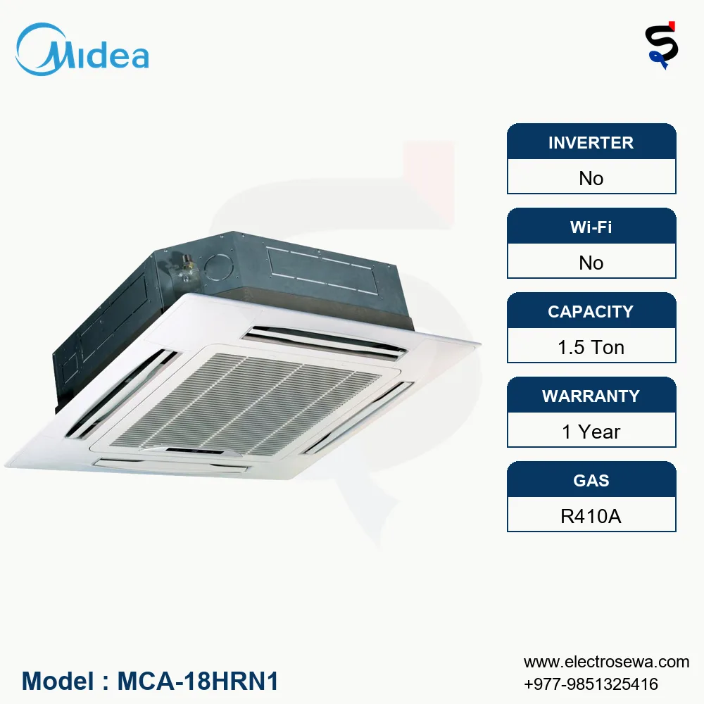 In conclusion, the MIDEA – 1.5 Ton Ceiling Cassette – Non-Inverter Air Conditioner (MCA-18HRN1) stands as a testament to innovation and efficiency in air conditioning technology. With its advanced features, energy-efficient design, and commitment to comfort, it’s the perfect solution to enhance your indoor environment.
