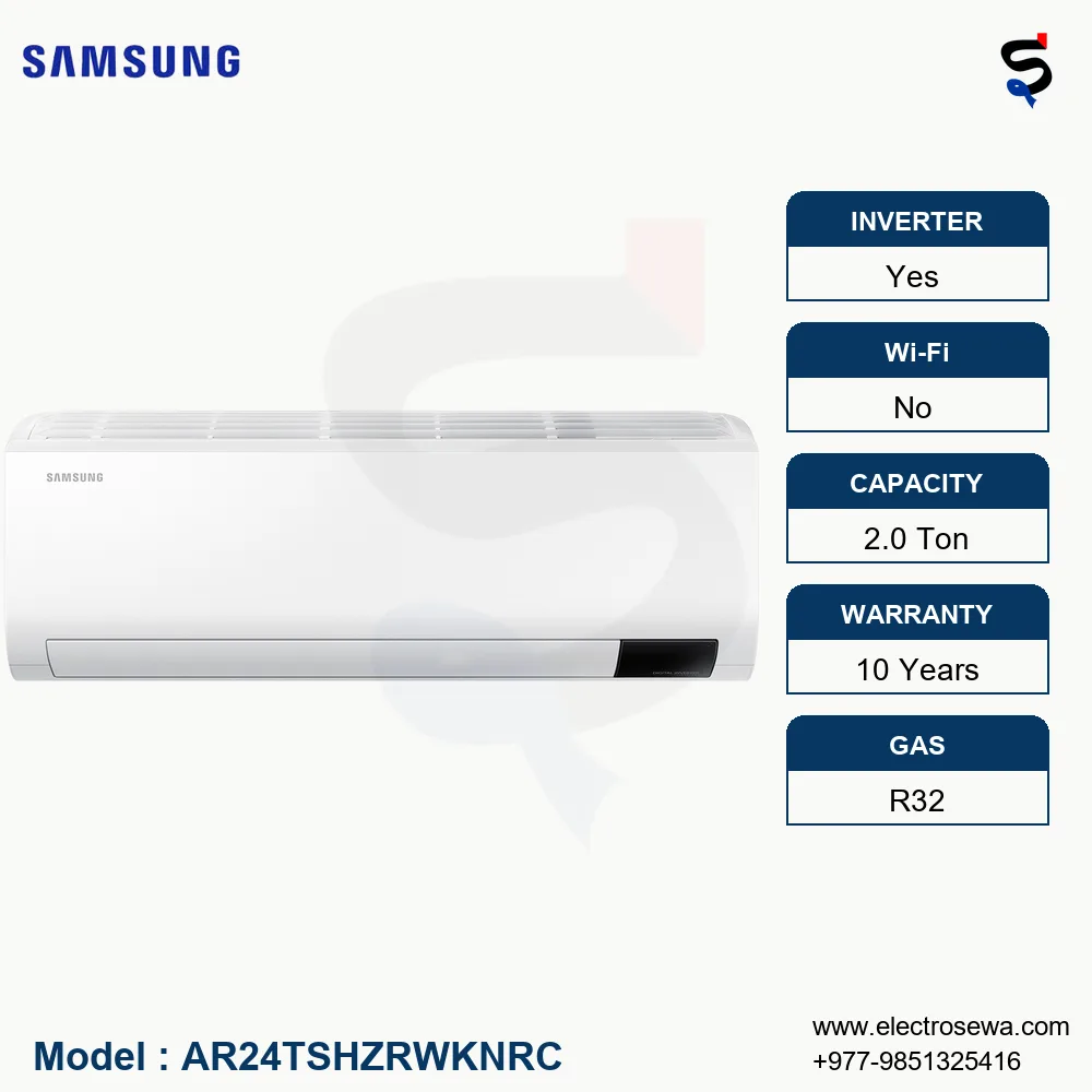 Upgrade your cooling experience with the Samsung AC – 2.0 Ton Wall Mount Inverter Air Conditioner (AR24TSHZRWKNRC). Enjoy powerful cooling, energy efficiency, and convenience in your home.