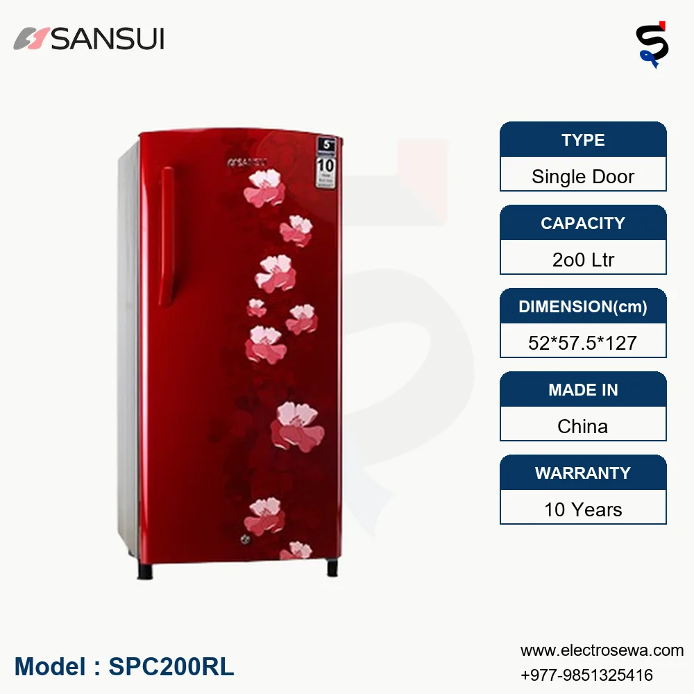 SANSUI REFRIGERATOR – 200 LTR – SINGLE DOOR FLORAL RED(SPC200RL)