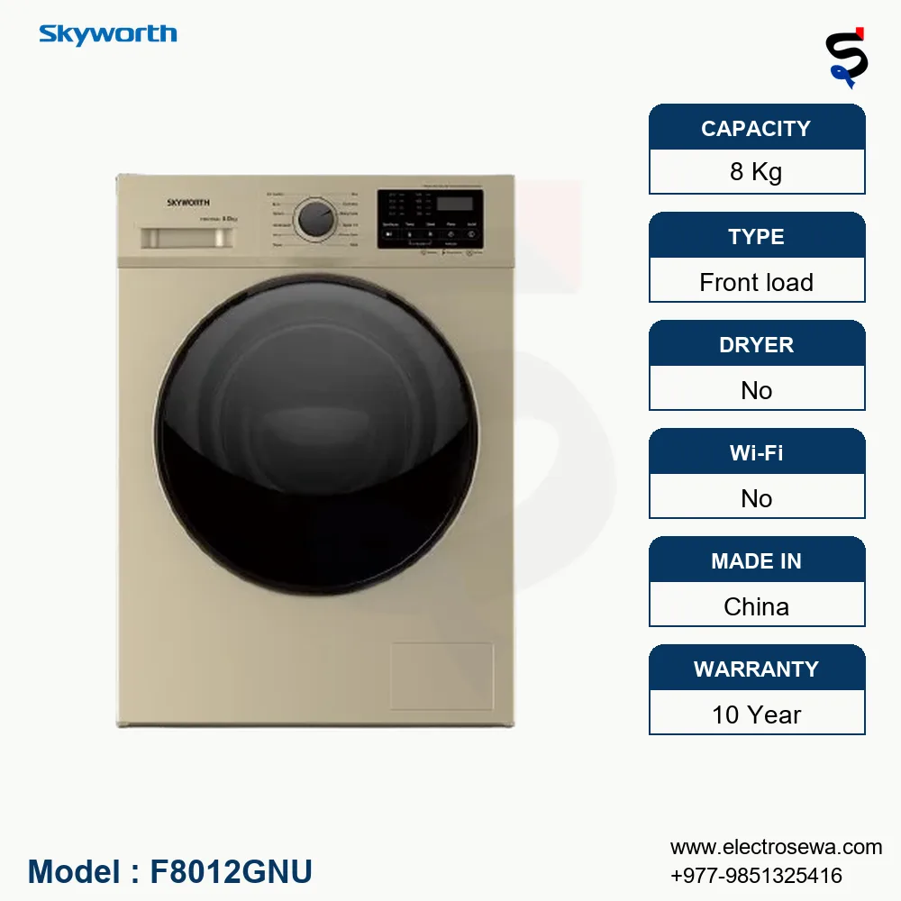 Introducing the SKYWORTH 8Kg Front Loading Washing Machine (F8012GNU), a perfect blend of efficiency, innovation, and style. Designed for the modern household, this machine ensures your laundry is effortlessly clean, every time.