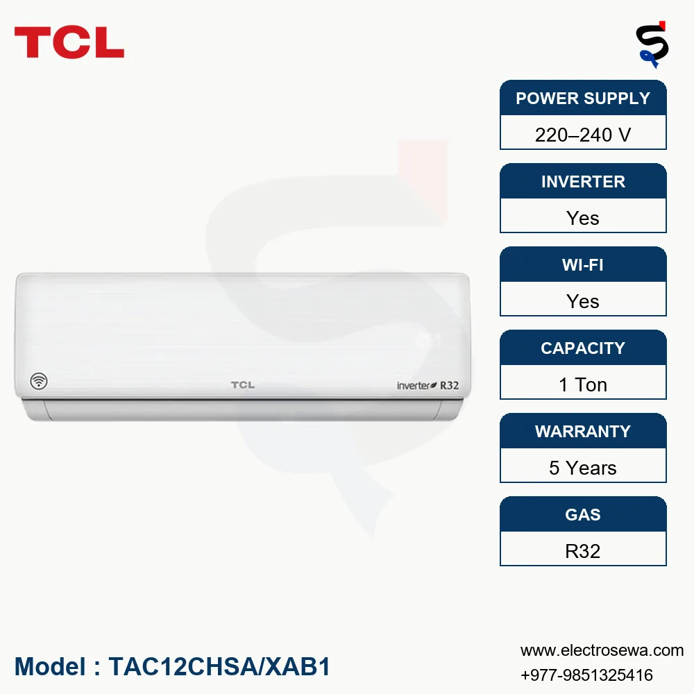 Introducing the TCL AC 1 Ton Inverter Wall Mount Split with WiFi Control (Model: TAC12CHSA/XAB1)—a perfect blend of advanced technology, energy efficiency, and modern design, tailored for optimal comfort in your home or office.